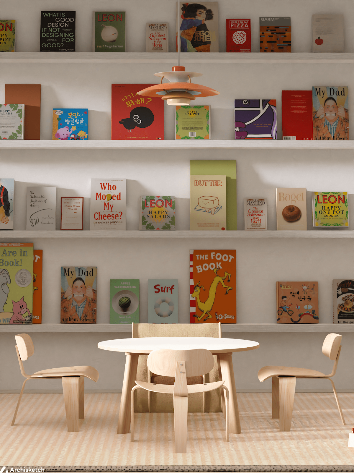 한참을 뛰어놀고 나면, 아이도 조금은 차분해지는 시간이 찾아와요. 아이 방에는 책 읽는 습관이 자연스럽게 생길 수 있도록 벽면을 넓게 활용해 책들을 가득 채웠어요. 일반적인 책장 대신, 책 표지가 한눈에 보이는 랙 형태로 디자인한 이유는 책을 꺼내지 않아도 어떤 책인지 알 수 있게 함이에요. 덕분에 아이는 책을 일일이 꺼내보지 않아도 한눈에 보이는 표지를 보며 스스로 고른답니다. 방에 들어서면 가장 먼저 눈에 들어오는 건 바로 책. ‘눈에 보이면, 손이 가는’ 구조가 아이의 시선을 사로잡고, 그 시선은 곧 호기심이 되고, 결국은 책을 펼치는 동작으로 이어지죠. 어렸을 때 책을 많이 읽어야 한다고 하잖아요. 그 문장 저도 굉장히 공감해서, 그 말을 실현할 수 있도록 공간에 고스란히 담았어요. 디자인적으로도 시각적인 리듬을 줄 수 있어 공간의 분위기를 무겁지 않게 만들어줘요. 기능과 감각을 동시에 잡은 아이의 특별한 공간이랍니다.